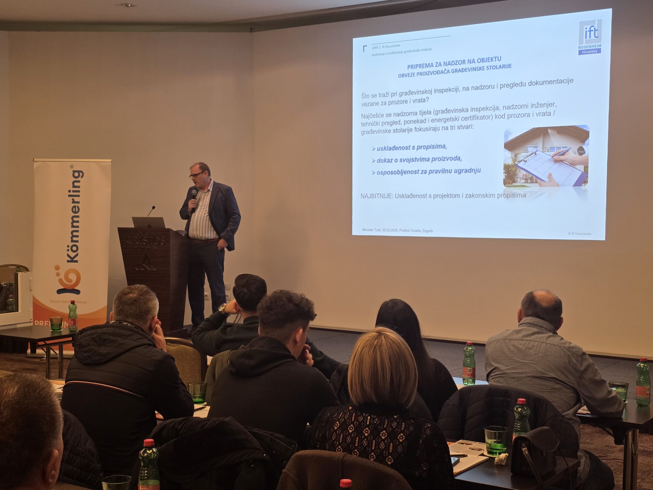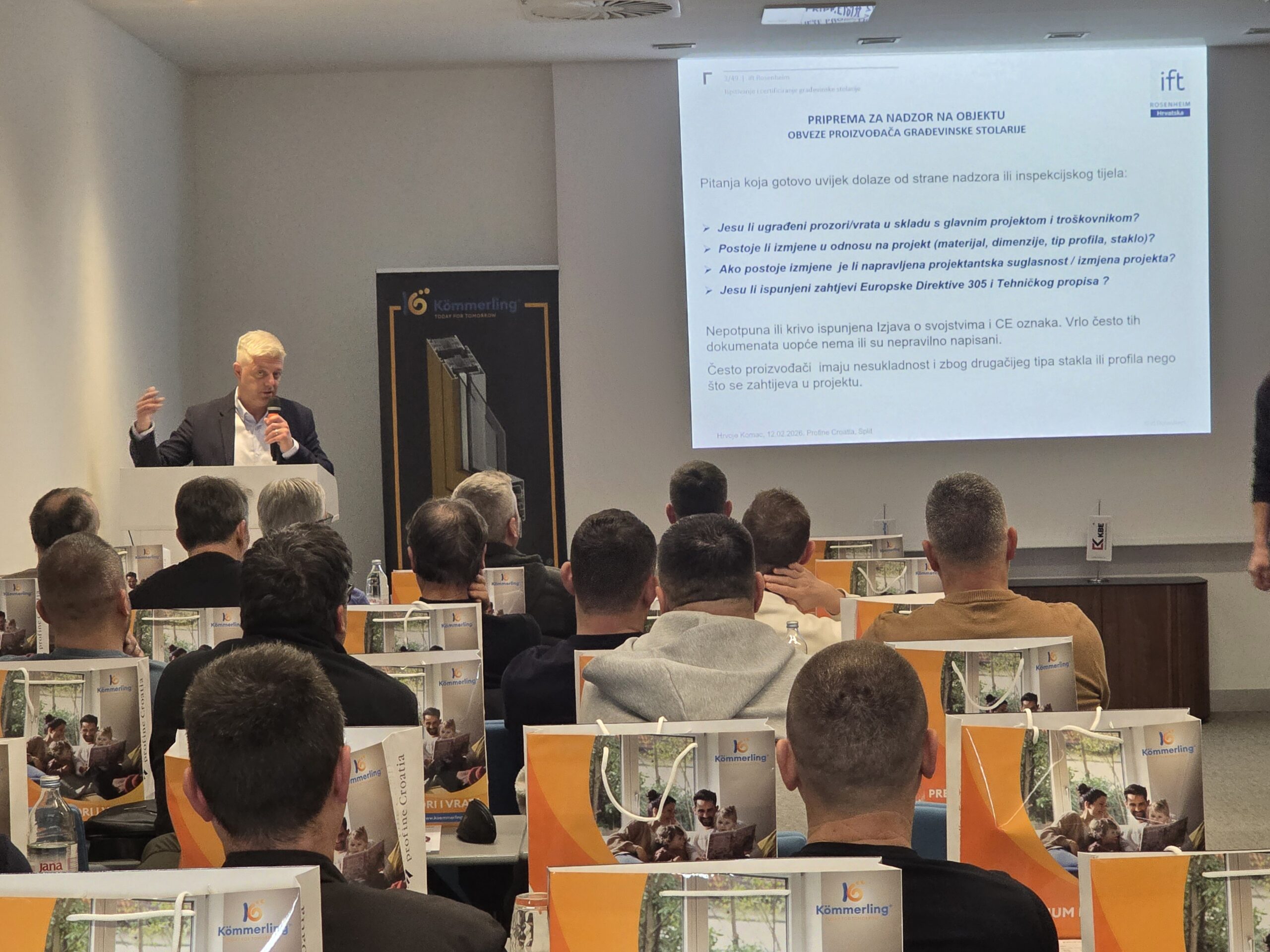 Program su dodatno obogatili vanjski stručnjaci. Hrvoje Komac iz ift Hrvatska govorio je o regulatornim i tehničkim zahtjevima usklađenosti proizvoda, važnosti dokumentacije i primjeni standarda, dok je Ronald Krog iz tvrtke Tremco Illbruck održao predavanje o suvremenim tehnologijama brtvljenja građevinske stolarije, s posebnim naglaskom na pravilnu izvedbu i prevenciju nesukladnosti na gradilištu. Njihov stručan i praktičan pristup sudionicima je pružio konkretne odgovore na izazove iz svakodnevne prakse.